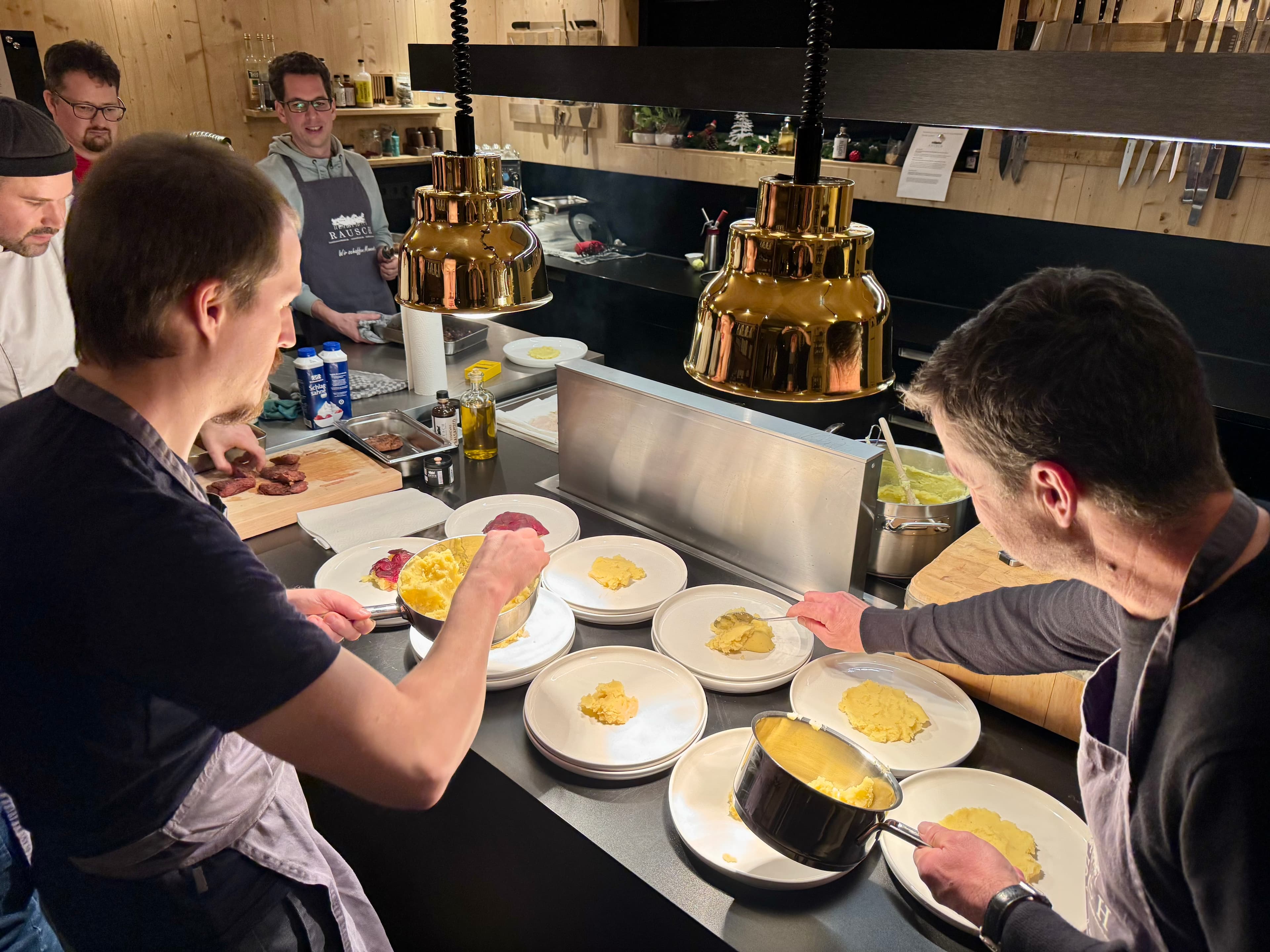 Danach ging es mit Glühwein weiter Richtung Esswerkstatt. Dort haben wir gemeinsam ein Drei-Gänge-Menü gekocht, geschnippelt, gelacht und am Ende zusammen gegessen. Kein grosses Tamtam, sondern genau die Art von Abend, die daran erinnert, warum Zusammenarbeit mehr ist als Termine und To-dos.